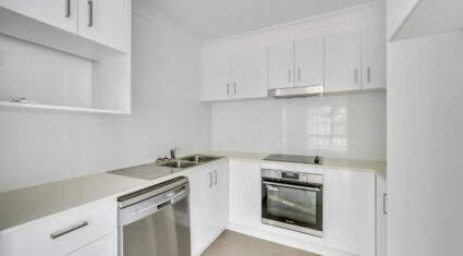 – Modern kitchen with loads of bench and cupboard space, stainless steel appliances including dishwasher