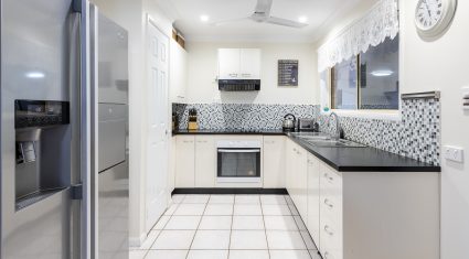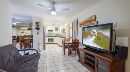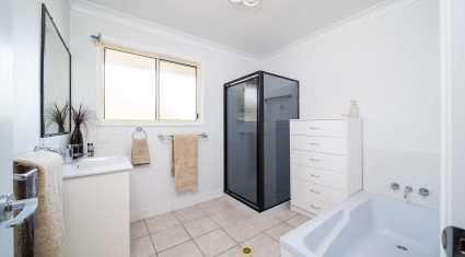 The master bedroom is extra large and built in with Airconditioning and a ceiling fan. All other 3 bedrooms boast the same features – built in, Airconditioning and ceiling fans. An airy bathroom provides a separate shower and bath and a modern vanity.
