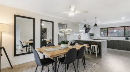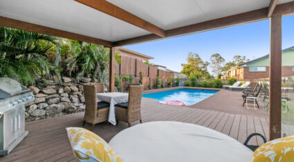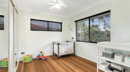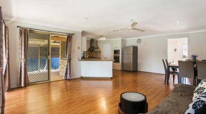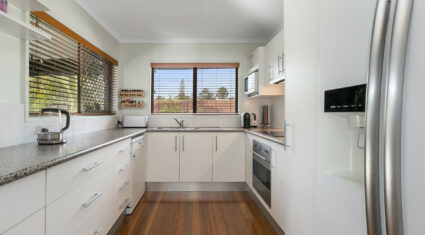 Offering convenient airconditioned living and dining upstairs, and a separate tiled downstairs rumpus room you will have no problem with separation of space. The pick for the entertainer in everyone will be the recently added expansive back deck which flows seamlessly from the upstairs living areas and kitchen. With two servery’s going out onto the deck from the kitchen and dining area, this truly is an entertainer’s haven, overlooking the grassy backyard where the children will love to play. You can easily entertain all year round out on the deck with features including a fully insulated ceiling, remote caf? blind and ceiling fan.