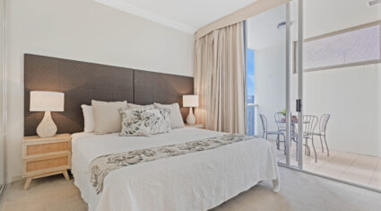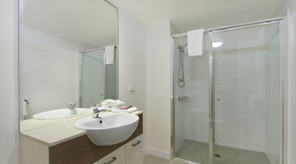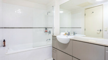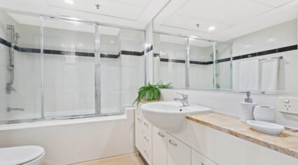 The two generously sized bedrooms have great separation being at either ends of the living area, with large mirrored built-ins. The master bedroom boasts a modern bathroom whilst the main bathroom offers plenty of storage.
