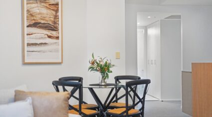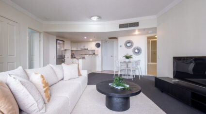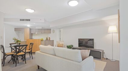 Stepping through this apartment it becomes apparent that it was cleverly designed to satisfy all the needs for a space to escape, entertain, play, relax and cook up a storm. Upon entering you are greeted with a sweeping open plan living area with ducted air conditioning and an abundance of natural light.