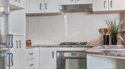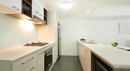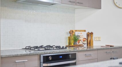The stunning kitchen is flawlessly integrated with the living area allowing you to cook whilst interacting with your family & guests or watching TV. Plenty of space for the aspiring chef, featuring modern granite bench tops, glass splash backs, plenty of storage and quality appliances including dishwasher, gas cooktop and full size oven.