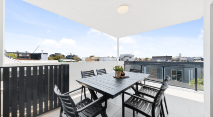 The kitchen and living area flows seamlessly through to the balcony area which has views to the North-Western suburbs. This is the perfect place to relax with a cool drink in the afternoon and unwind.