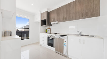 • Sleek and stylish modern kitchen with plenty of cupboard space, quality appliances and stone benchtops