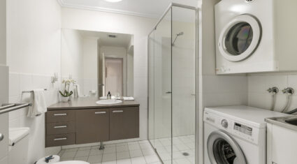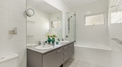 Flowing seamlessly off the kitchen is a large timber entertainment deck to the back with a bi-fold window with servery from the kitchen and to the front is a balcony offering views over the pool and parklands. This home boast solid timber floors throughout the kitchen, dining and living areas. In the bathrooms you will find floor to ceiling tiles with modern vanities and tapware all decorated to a neutral colour palette that won’t date. The Ensuite features a dual vanity, separate toilet and large walk-in shower.