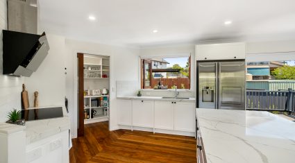 Boasting 4 Built-in bedrooms all with air-conditioning (with a possible 5th) and 3 generous sized bathrooms this home will tick many boxes for most families, with nothing left to do but move in and relax by taking a dip in the pool or sitting with a cocktail in the pool house. The French Provincial inspired kitchen will win over any cook with Miele Appliances including a coffee machine, induction cooktop, electric oven, range hood, integrated dishwasher and plumbed-in French door fridge. The Butlers Pantry offers a huge amount of storage and additional food prep area. In the centre of the kitchen is a large breakfast bar. Just off the kitchen you will find a wine bar area complete with a built-in wine fridge, this space could also double up as a study nook if you want to watch over the children whilst prepping dinner. This brand-new kitchen boasts the latest style with Calcutta stone tops and stunning white Shaker Profile cabinetry.