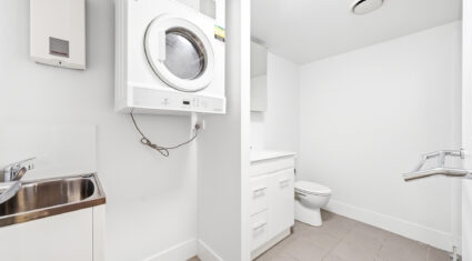 – Modern bathroom with combined shower and toilet; and built in laundry
