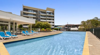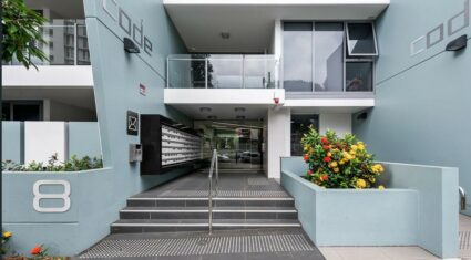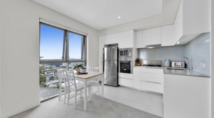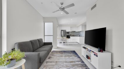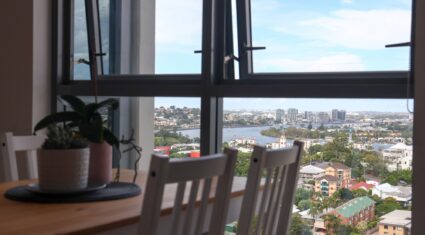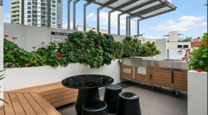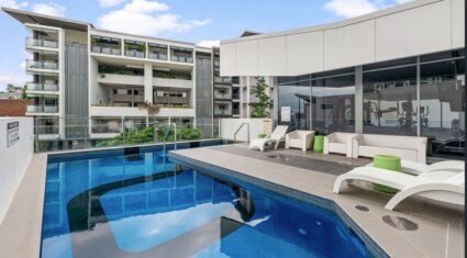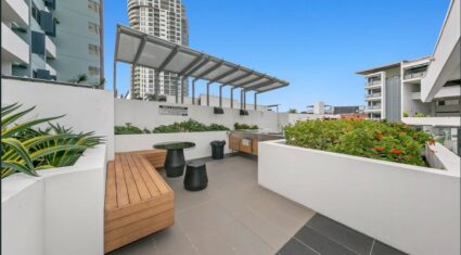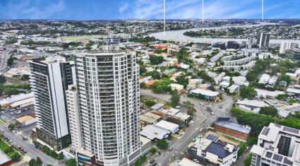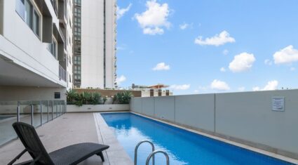 The complex amenities include a Skydeck on Level 10, with panoramic views over the Brisbane CBD and communal BBQ facilities. A sparkling in-ground pool with poolside terrace, fully equipped gymnasium, and media room are also on offer for residents. You will be within walking distance to the James Street precinct, King Street’s restaurants and cafes, Gasworks, and all the nightlife of