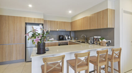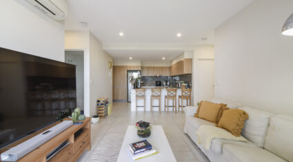 The open-plan and air-conditioned kitchen, meals and living room is set in the heart of the home with direct access to the spacious entertainer’s balcony. Stone benchtops, stainless steel appliances, gorgeous cabinetry and breakfast bar seating is all yours in the kitchen while those who love to entertain can step outside, relax on the balcony and admire the outlook.