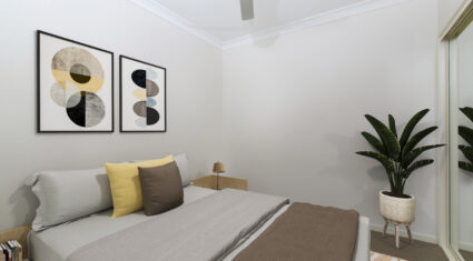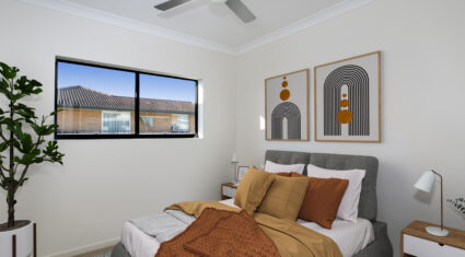 – Two generously sized bedrooms with built-ins & fans