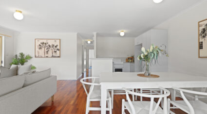 – Open plan living, dining & kitchen with AC